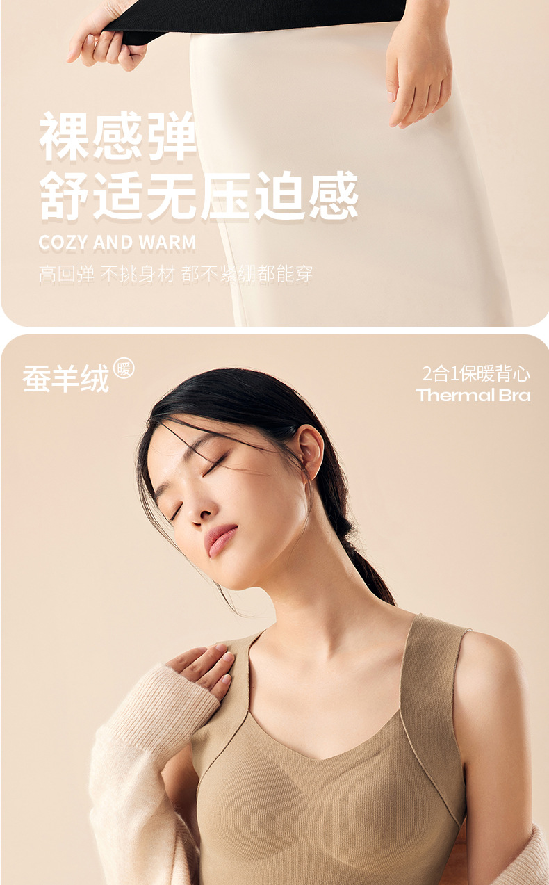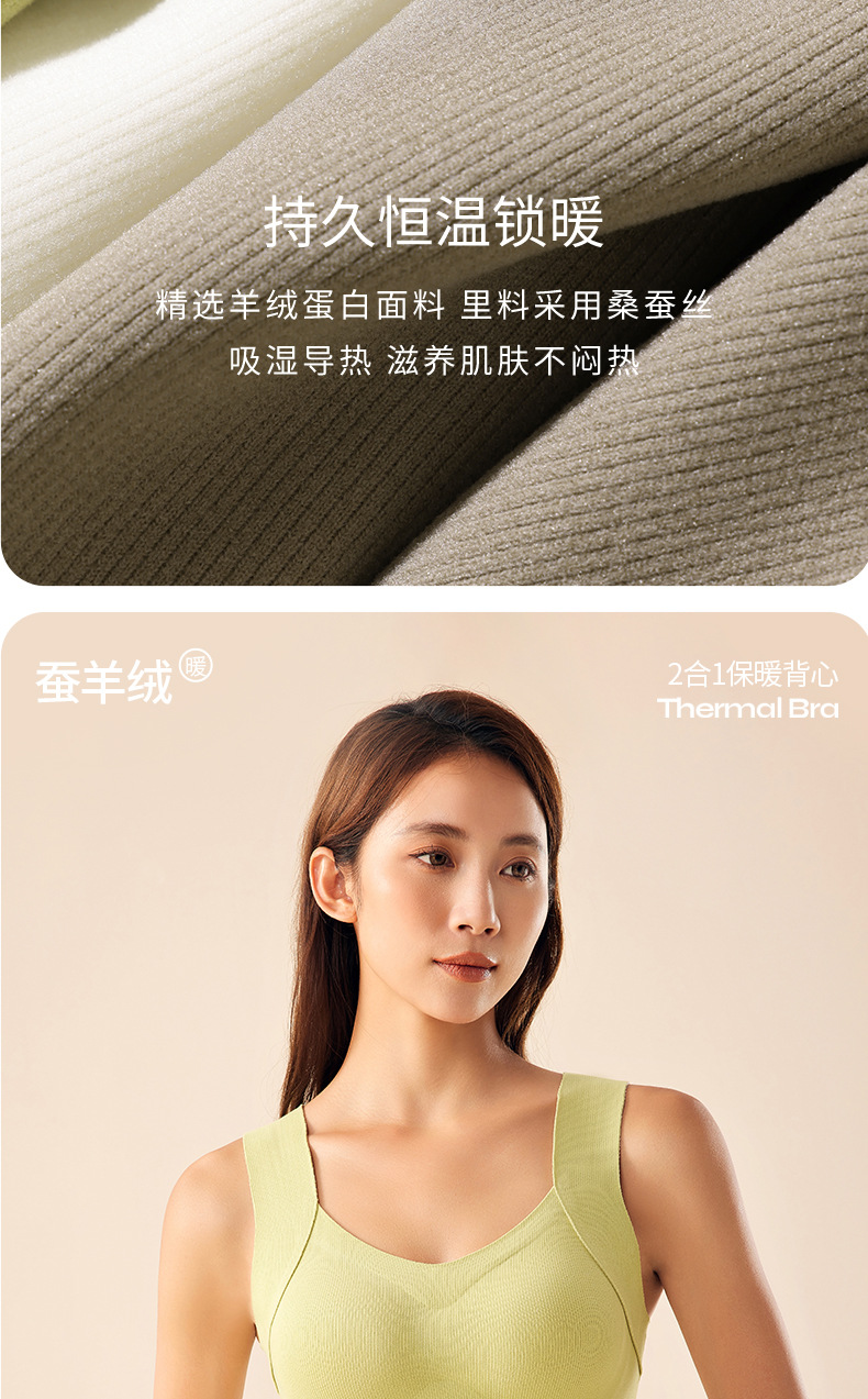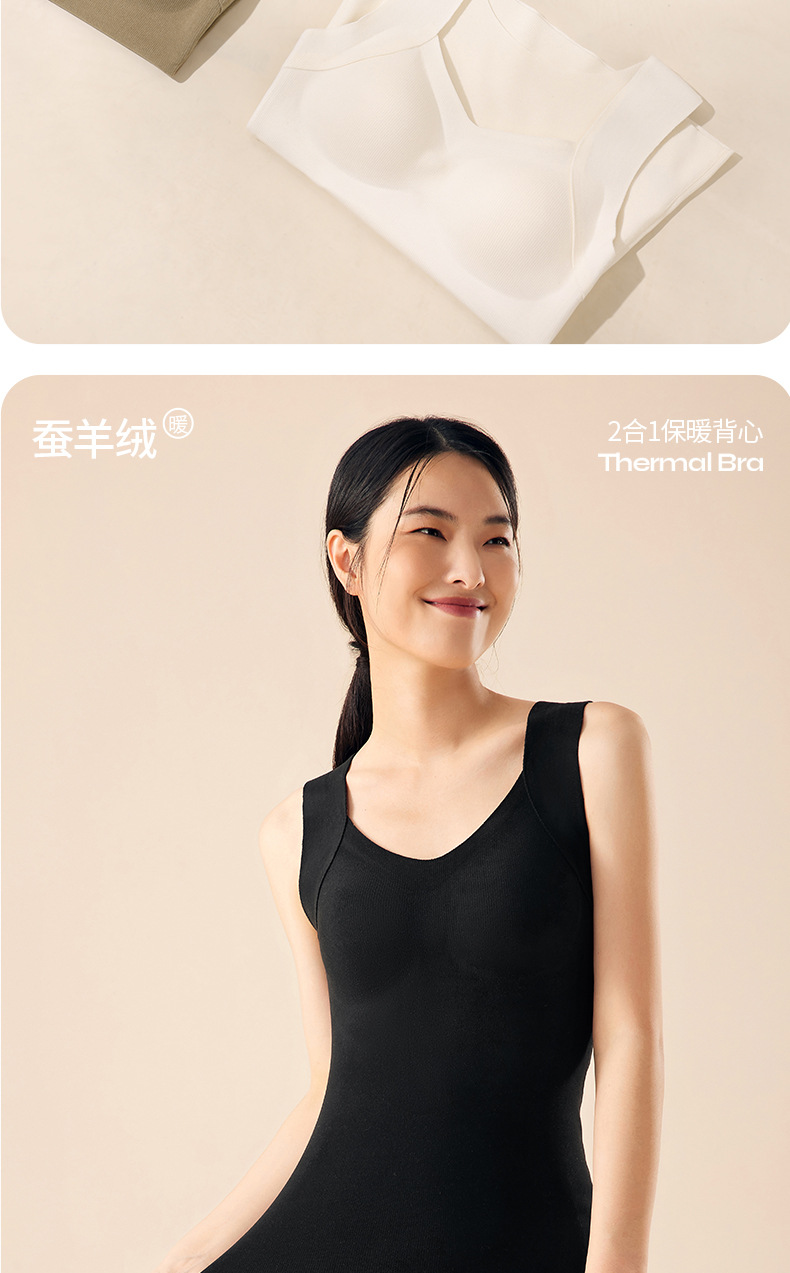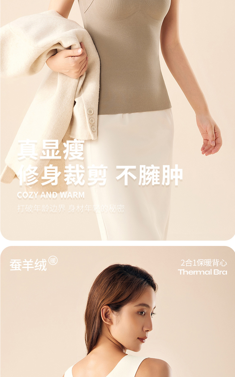 He Sheng Long 2023 New Silkworm Wool 2 In 1 Thermal Vest Fixed With Chest Pad Slim-Fit All Matching Bottom Vest