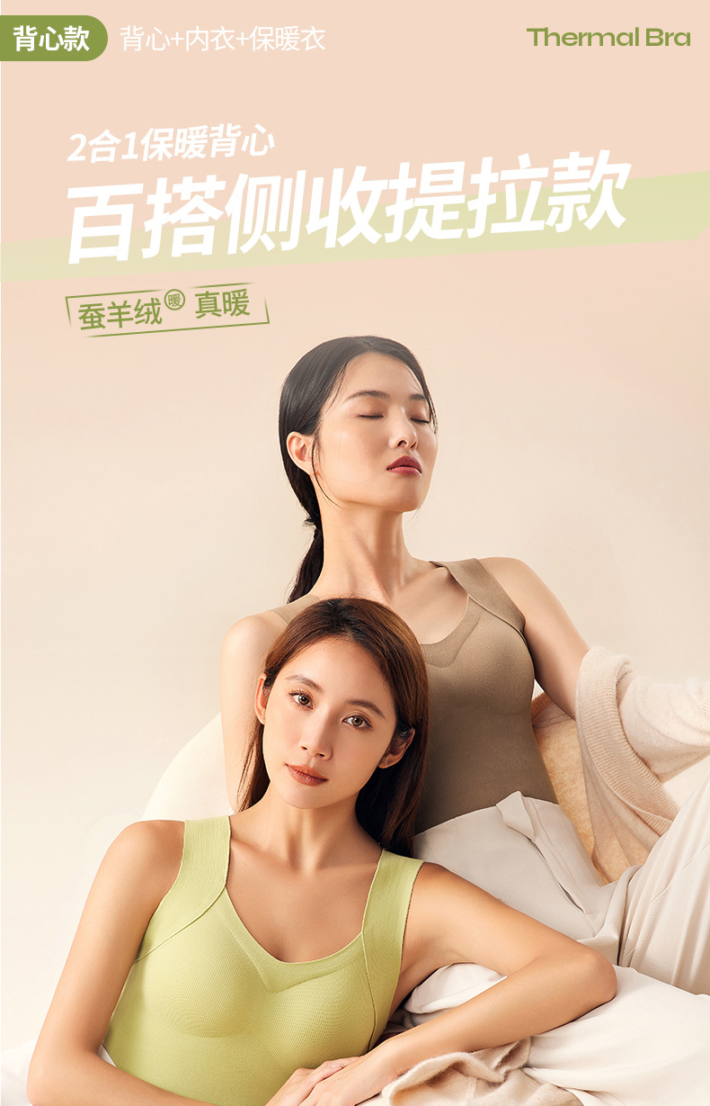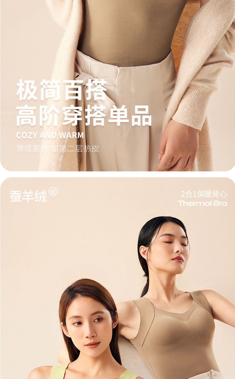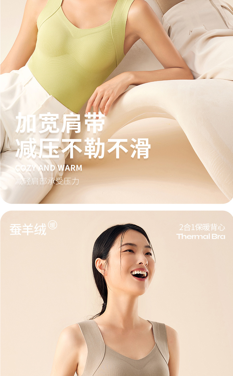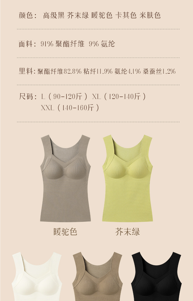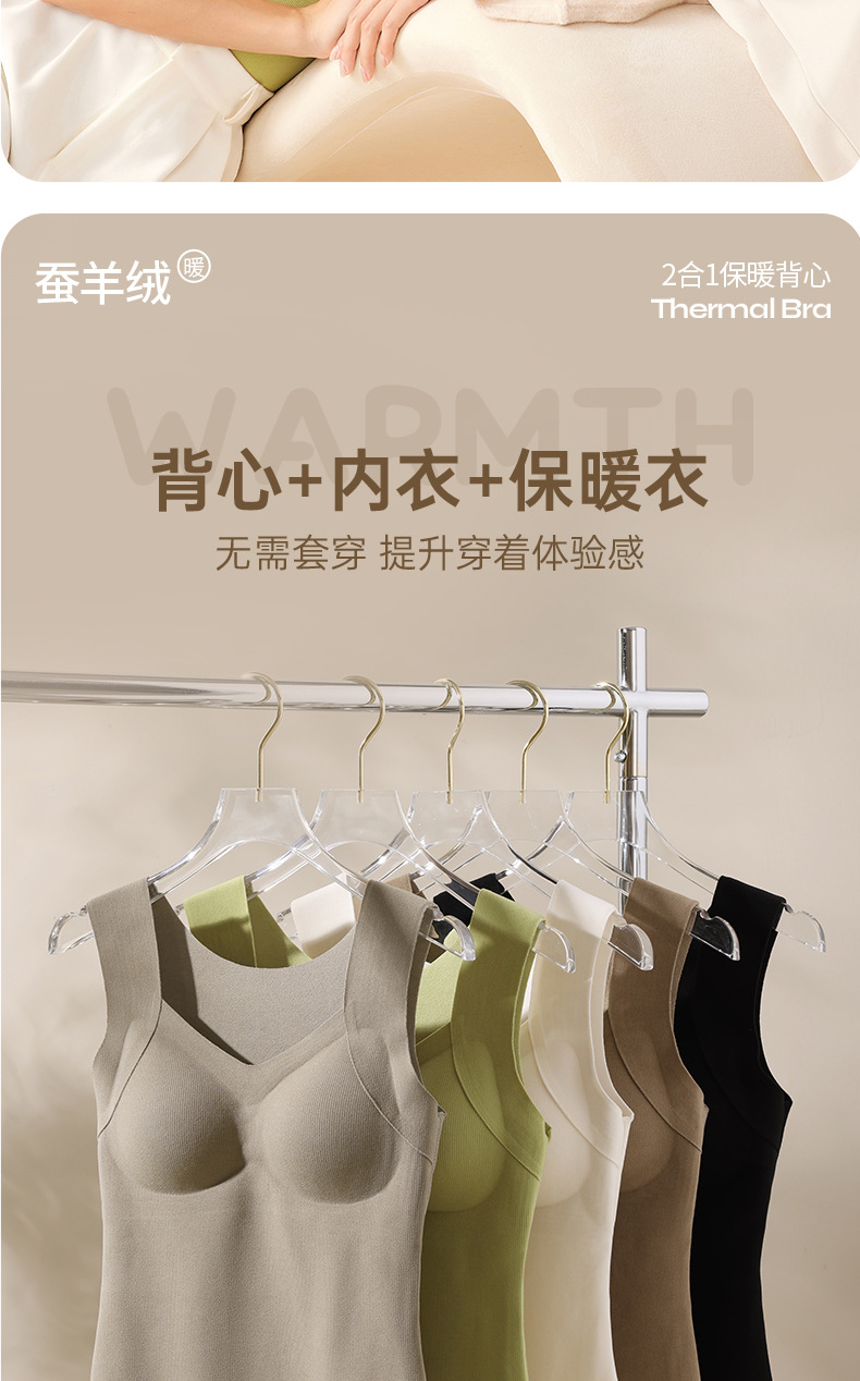 He Sheng Long 2023 New Silkworm Wool 2 In 1 Thermal Vest Fixed With Chest Pad Slim-Fit All Matching Bottom Vest
