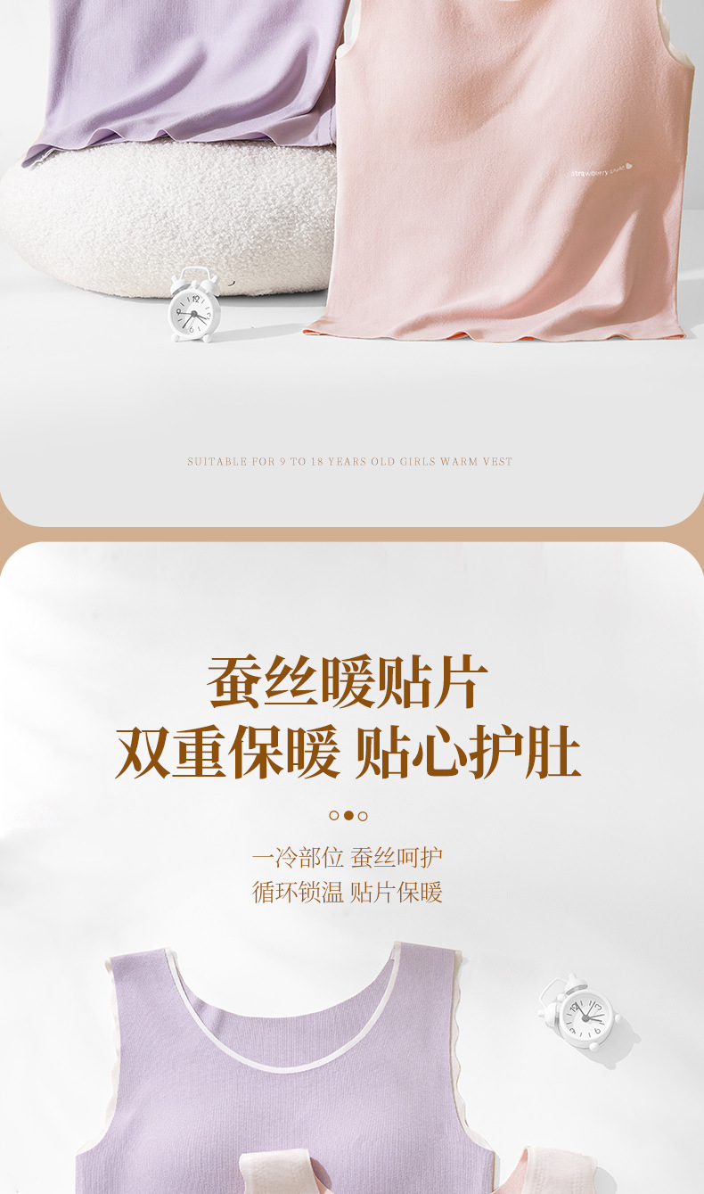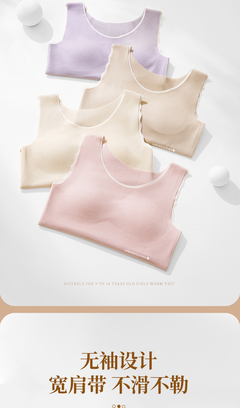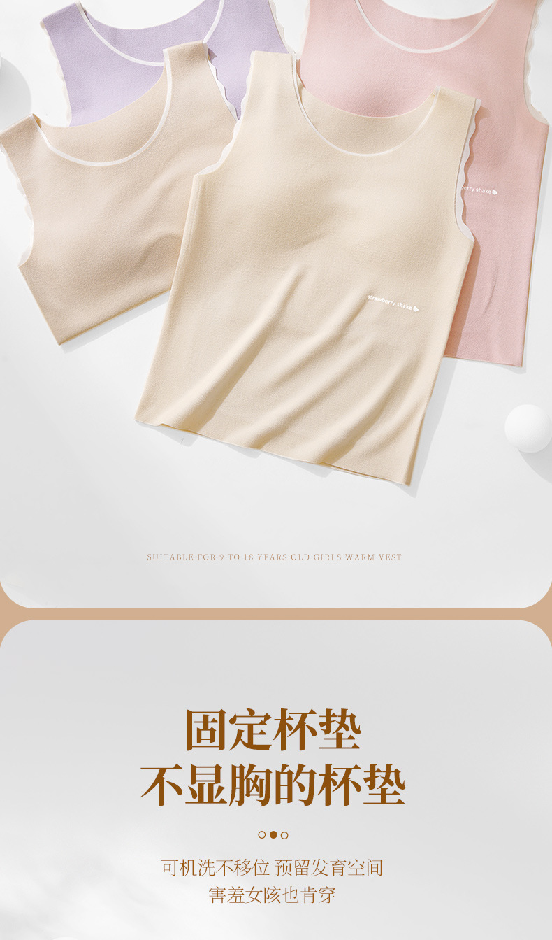 Hesheng Long Girls' Development Period Cashmere Protein Thermal Vest Fixed Cup Silk Inner Heating Thermal Vest