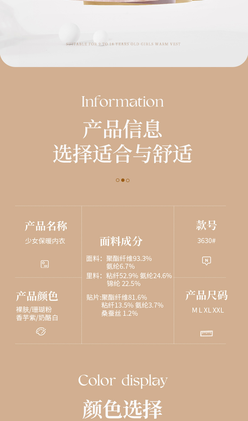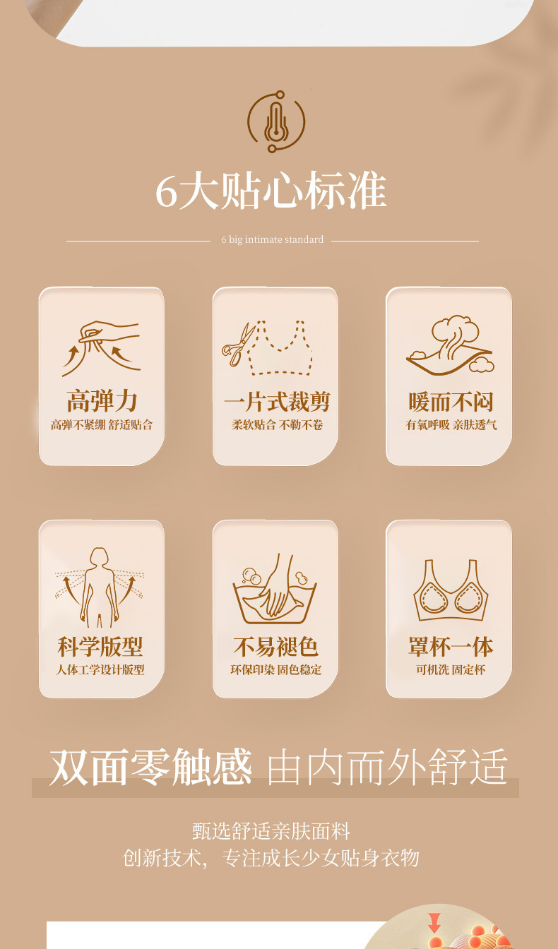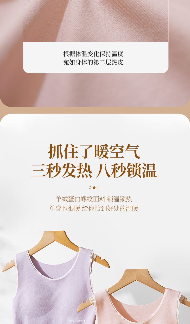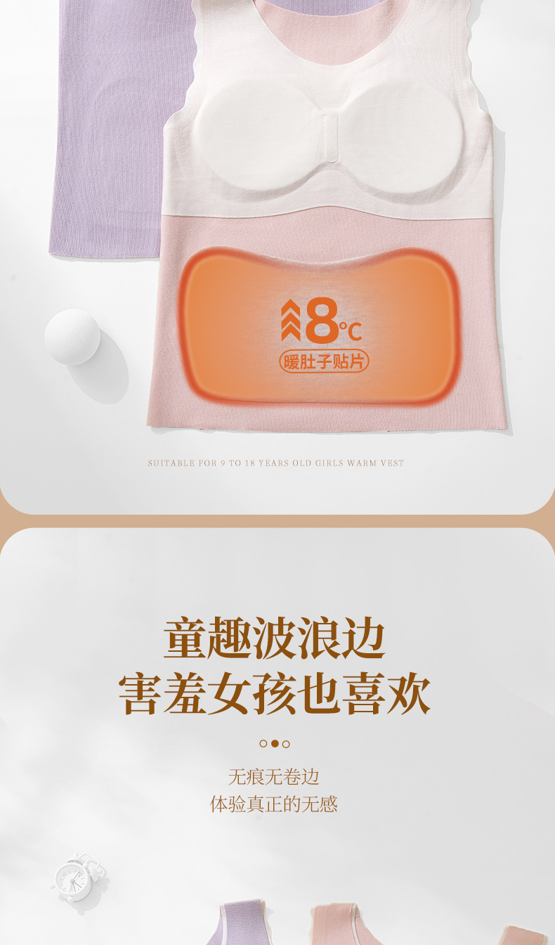 Hesheng Long Girls' Development Period Cashmere Protein Thermal Vest Fixed Cup Silk Inner Heating Thermal Vest